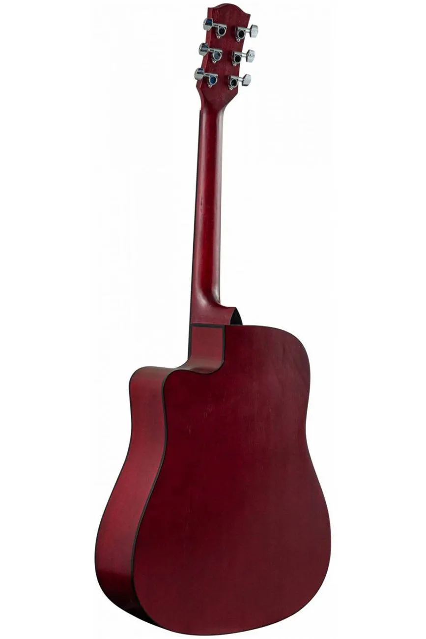 Гитара красного цвета, покрытие - матовый лак.