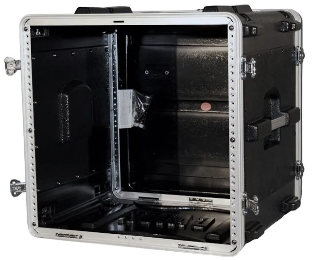 Высота 10U, глубина 19", фронтальные и тыловые рельсы. Материал покрытия - ПВХ. 7-миллиметровые оцинкованные, легко заменяемые рэковые рельсы. Флайт-кейсовые эксцентрик-замки. Удобные при переноске боковые ручки. Внутренние размеры 41,91 х 48,26 х 44,45 см. Рэк: глубина 48,90 см, высота юнитов 25,40 см. Вес 8,15 кг.