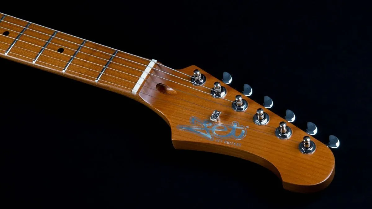 Накладка на гриф выполнена из печеного клена (roasted maple). При такой обработке поры дерева максимально сжимаются и в процессе использования вода уже не будет выходить, ваша накладка не сожмется и лады не повылазят вне зависимости от влажности и смены температуры. Плюс такое дерево выглядит очень красиво.