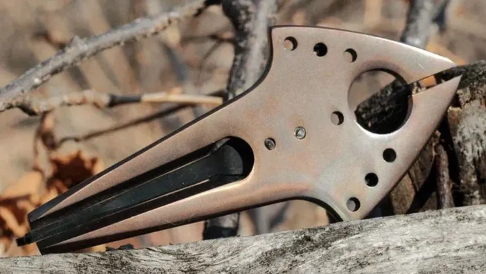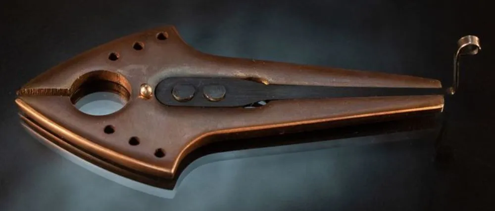 Фирменный Шоколадный корпус - термически обработанная нержавеющая сталь в необычном оттенке, а язычок варгана покрыт воронением.